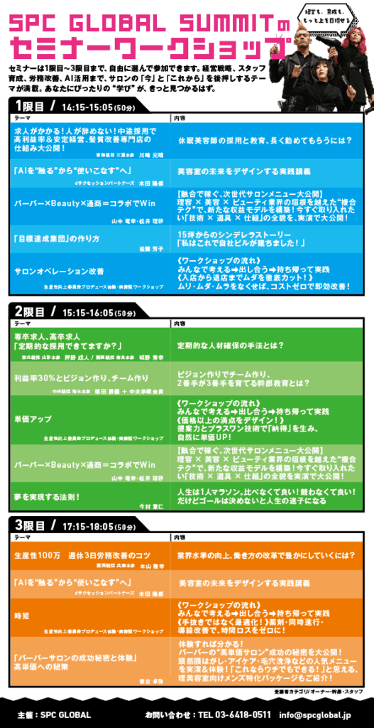 SPC GLOBAL FORUM 2025への参加には、専用フォームから当日ご参加いただく各時間帯ごとのセミナー選択をお願いいたします。